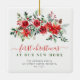 Un design moderne de carte de Noël joyeux avec une typographie rouge audacieuse. Nouvelle maison pour les vacances avec adresse personnalisée.