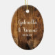 Célébrez votre premier Noël en tant que couple nouvellement engagé et commémorez la journée spéciale avec le charmant seau en bois et le Fiançailles de la campagne des marguerites blanches Oval Ornament. Cette coutume rustique et chic que nous sommes engagés ornement de Noël présente une photo florale pittoresque d'un seau en bois rempli d'un bouquet de fleurs de marguerite blanche avec un arrière - plan de grange brune patinée.
