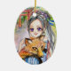 Ornement En Céramique Fille Holding Fox