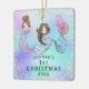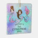 Fille de sirène 1er ornement de Noël avec un faux design de parties scintillant et sirènes brune.