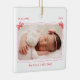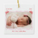 Introducing the perfect Christmas ornament for Baby's first Christmas! This customizable ornament is the perfect way to celebrate your first Christmas together as a family or with a new family member. With a whimsical pink and red bow frame design and handwritten font, this ornament will look stunning on your tree.