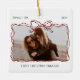 Introducing the perfect Christmas ornament for the soon to be Mr and Mrs! This customizable ornament is the perfect way to celebrate your first Christmas together as an engaged couple. With a whimsical burgundy bow frame design and handwritten font, this ornament will look stunning on your tree.