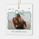 Introducing the perfect Christmas ornament for the soon to be Mr and Mrs! This customizable ornament is the perfect way to celebrate your first Christmas together as an engaged couple. With a whimsical green bow frame design and handwritten font, this ornament will look stunning on your tree.
