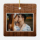 Ornement En Céramique First Christmas Engaged Rustic String Lights Photo