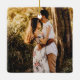 Célébrez le 1er jour férié joyeux de votre fiançailles avec une photo personnalisée 1 de "Notre premier Noël Ensemble" carré verdure monoline ornement céramique fleur. Ce design présente une verdure de Noël aquarelle élégante avec des fleurs de monoline d'or, calligraphie de style manuscrit, les noms et l'année du couple, et une photo de votre choix. Cette tenue mariage unique ajoute une touche élégante à la décoration de la maison de Noël.