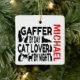 C'est un ornement unique avec la citation "Gaffer by Day Amoureux des chats by Night" est parfait pour toute gaffer qui aime les chats.