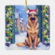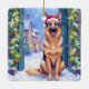 Ornement En Céramique German Shepherd Snowy Town Gate Santa Christmas