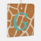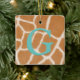Cet ornement a un monogramme d'aqua sur les taches de girafes. Customisez le dos avec votre propre message.