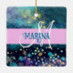 Glam mermaid aqua or parties scintillant scintille le nom monogramme et l'ornement céramique initial. Votre nom personnalisé et votre monogramme sont écrits dans un élégant script écrit à la main avec un arrière - plan rose clair. Vous pouvez modifier la couleur du texte, le style et la taille de police à l'aide de l'option personnaliser.