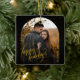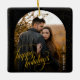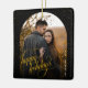 Cet élégant ornement de vacances présente un design glamour avec une touche pétillante. Votre photo est présentée dans une belle arche dorée, dressée contre un riche arrière - plan noir orné d'une délicate parties scintillant dorée. L'accueil "Happy Holidays" est écrit dans une police de caractères stylisée, également en or, ajoutant une touche d'élégance et de festivité. Le fond de l'ornement poursuit le thème glamour avec un design noir et or et un message sincère qui souligne l'importance de chérir les moments de tous les jours. L'ensemble est sophistiqué et intemporel, ce qui en fait un choix parfait pour les couples à la recherche d'un Ornement de vacances unique et élégant à envoyer en famille et entre amis.