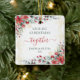 Ce design présente une élégante verdure de baies de Noël et une fleur sainte de monoline d'or, calligraphie de style manuscrit, ainsi que les noms et l'année du couple. Cette tenue mariage unique ajoute une touche élégante à la décoration de la maison de Noël.