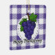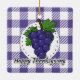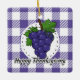 Grape on a violet white buffalo plaid pattern background withcaption "Happy Thanksgiving".