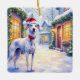Ornement En Céramique Greyhound Snowy Village Santa Hat Christmas Art