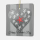 L'amour est dans l'air avec ce magnifique ornement côtier à thème céramique. Célébrez la Saint-Valentin avec cet ajout d'inspiration balnéaire à votre décor de maison de style nautique ou de plage. L'ornement en céramique est composé d'un arrière - plan rayé gris et d'un coeur rempli de différentes sortes de coquillages et d'une étoile de mer rouge comme point central. Le texte à l'avant dit "Heureuse Sainte-Valentin" mais peut être supprimé ou modifié pour personnalisation sans frais supplémentaires. L'arrière de l'ornement a le même design mais sans texte. Utilisez l'ornement sur les arbres, les couronnes, les projets d'artisanat saisonnier, en faveur des sacs, ou en tant que cravates de colis. Parcourez les produits de coordination disponibles dans cette collection populaire de Saint-Valentin Côtier, y compris les cartes, autocollants, magnets, plaques de papier, serviettes, dessous de verre, coussins, et plus encore!
