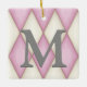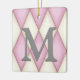 Cet élégant ornement personnalisé a un grand monogramme sur un motif arlequin de diamants roses et crème. Écrivez votre message personnalisé au dos d'un arrière - plan en détresse.