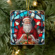 An absolutely stunning Christmas ornament perfect for a cherished spot on your tree! This design captures a warm, detailed portrait of Santa Claus holding a star and holly, beautifully rendered in the vibrant, illuminated style of traditional stained glass. The rich colors and classic imagery make this a timeless piece, ideal for commemorating a special year, gifting, or adding an elegant, classic holiday touch to any Christmas decor collection.
