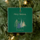 Hunter Green with 4 graphic Christmas trees in green pink and gold Christmas Card is stylish with a holiday feel. Each tree is individual and the colors are subtle and look great against the Christmas hunter green. This ornament can be personalized with your own photo, the year, your preferred holiday greeting and names. The ornament also coordinates with a range of Holiday Party stationary and party supplies. Giving a photo ornament each year should be a tradition for grandparents and family members. Yearly photo ornaments build a history to be relived every holiday season for your loved ones.