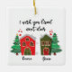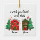 Cet ornement en céramique de Noël a deux mignonnes maisons. avec nom personnalisable. Un cadeau en forme de coeur pour Noël.