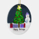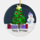 Une jolie scène hivernale avec un sapin de Noël décoré un petit bonhomme de neige et de jolis cadeaux sous l'arbre.