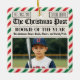 Célébrez le MVP de votre vie avec cet ornement de journal de Noël Recrue de l'année ! Parfait pour les fans de baseball et de football — ou pour quiconque célèbre un grand « premier » cette année — cet ornement personnalisé présente votre photo, votre nom et des titres ludiques inspirés du sport dans un design festif de style journal. Un souvenir amusant pour les athlètes, les papas sportifs ou les recrues de toutes sortes, cet ornement en céramique ajoute l'esprit gagnant à votre arbre de Noël.