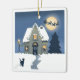 Ornement En Céramique Joyeuse Maison de Noël avec Chat et Père Noël