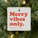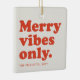 Joyeuses vibes seulement cette saison des fêtes ! Célébrez toutes les bonnes choses avec ce joli ornement rouge et blanc cassé rétro avec votre photo et texte personnalisé. Le type de retour en arrière dit "joyeuses vibes seulement" et il a également de la place pour le nom, l'année ou le message. Les teintes amusantes du rouge rétro et du blanc cassé sont également une touche vintage. Un excellent moyen de célébrer l'année qui a été !