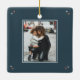 Ornement photo de Noël moderne avec des arbres et des étoiles mignons et un texte "Joyeux Noël" mis dans une police décorative tendance. Personnalisez cet ornement de Noël avec votre photo et votre nom de famille.