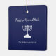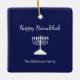 Happy Hanoukka Blue Holiday ornament, avec une simple menorah blanche et la typographie de script. Avec des lettres personnalisables en blanc, vous pouvez ajouter vos propres informations. Un complément festif à votre décor de vacances.