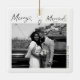 Célébrez votre première saison de vacances avec l'Ornement en céramique de Noël moderne Joyeux et Marié. Doté d'élégants lettrages et de votre photo préférée, cet ornement ajoute une touche intemporelle à votre sapin de Noël. Parfait pour les jeunes mariés, c’est un souvenir de coeur à chérir année après année.