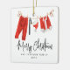 Amusant ornement moderne de Noël - Design présente le dicton "Joyeux Noël", une ligne de linge de santa claus, nom de famille et année.