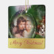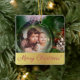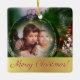 Cet ornement de vacances amusant présente un ornement amusant dans un design ornemental. Il dispose d'une image d'une boule de verre ou d'un cadre photo de bauble où vous pouvez télécharger votre propre photo. La légende dit "Joyeux Noël !" Le dos a de l'espace pour un court message ou un message ainsi que votre nom et l'année. Un cadeau ou un souvenir parfait.