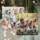Célébrez les joies simples des vacances avec un élégant ornement moderne de 5 photo en céramique. Ce modèle est facile à personnaliser et les couleurs peuvent être changées avec l'outil Zazzle Design Editor. Le design minimaliste de superposition en noir et blanc présente un script tendance "joyeux noël" avec un joli ruban & arc, un collage photo enveloppé "cadeau" sur le dos, et cinq photos carrés de votre choix. Cette tenue unique ajoute une touche customisée élégante aux décorations de maisons de Noël.