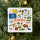 Commemorate your trip to the state of Kansas with this modern keepsake Christmas ornament, featuring hand-drawn style illustrations of iconic food, animals, landmarks, landscapes, and culture. Personalize the back to mark your US adventure and create a memory you'll hang up on the tree for the Holidays year after year.