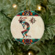 Personnalisez cet ornement de Noël "One of a Kind" au sud-ouest de Kokopelli! Il comprend un Kokopelli du sud-ouest jouant de la Flûte et dansant sous le soleil sur un Arrière - plan de grès...Entouré par des frontières turquoise, orange et noire ! Design D'Art Original Par L'Artiste Kerry Miller.