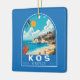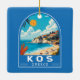 Conception de déplacement vectoriel rétro Kos. Kos, l'une des îles du Dodécanèse de Grèce, est connue pour ses plages de sable fin. Il est également riche en monuments grecs et romains, notamment dans et autour de Kos Town.