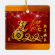 lanternes chinoises avec feux d'artifice en arrière - plan avec coupé en papier doré d'un rat mignon + grand doré 2020, Année dorée du Rat, saluant "Bonne année" dans l'idéogramme chinois et de rat doré. Design sur ornement en céramique carré avec arrière - plan rouge foncé + souhaits en chinois à dos. Carte de voeux, carte postale, invitations, produits artisanaux... Parfait pour le Nouvel An chinois du Rat 2020.