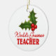 Ornement de Noël pour votre professeur préféré qui a la sainte de baies rouges et les mots Meilleur professeur du monde.