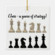 Un échiquier avec des pièces d'échecs en noir et blanc est représenté sur la moitié inférieure de ce produit. Au-dessus de cette photo se trouvent les mots : "Les échecs, comme la vie, vous devez penser à chaque mouvement que vous faites." Au verso, une photo des échecs et des morceaux noirs avec les mots : "Les échecs sont une partie de stratégie !"