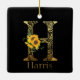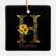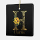 Beau ornement dispose de lettre H décorée d'or avec joli bouquet de tournesol aquarelle, et or personnalisable texte moderne sur arrière - plan noir