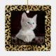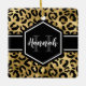 Ornement céramique carré or et noir empreinte de léopard, avec un nom personnalisé et un modèle monogramme d'un côté et un modèle photo de l'autre. Un motif poster de animal de safari mignon et branché, arrière - plan surmonté d'un petit morceau de personnalisation.