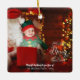 Découvrez l'émerveillement de la saison avec cet adorable ornement en céramique de Noël ! L'image d'un enfant dans une tenue d'elfe en train de voir Père Noël, mise en valeur par une belle superposition de script "Merry". Il saisit parfaitement ce moment de magie et de joie des vacances. Le message exprime votre sentiment chaleureux : "Joyeux Noël de nous tous !" C'est une façon idéale de partager la joie de l'hiver avec les proches.