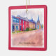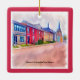 Dans un vif affichage de couleurs, une photo d'une rangée de maisons se transforme en un ornement carré abstrait peint à l'aquarelle. Les rouges éclatent avec chaleur, confort et énergie, tandis que les bleus apportent un sentiment de calme et de tranquillité. Des éclaboussures de jaune ajoutent une luminosité joyeuse qui attire l'oeil. Cet invitation de la scène urbaine sourit car il transforme une rangée ordinaire de maisons en une joyeuse oeuvre d'art. Par https://www.zazzle.com/store/celestesheffey