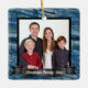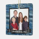 Magnifique et élégant arrière - plan en marbre bleu customisé avec votre photo de famille. Ornement de Noël personnalisé avec votre portrait de famille, nom ou titre. Grande idée cadeau ornement pour n'importe qui!