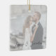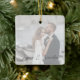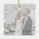 Célébrez votre premier Noël en tant que mariés ou partagez la joie en donnant ces ornements de Noël modernes et minimalistes. Ce design présente votre photo de choix mariage avec une superposition semi-transparente et vos noms en script de calligraphie. Un souvenir romantique pour vous ou un cadeau pour les parents ou grands-parents.