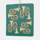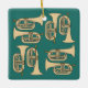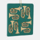 Tan marchant cornes de baryton dans un motif crosshatch contre un arrière - plan vert est une conception d'instrument de musique unique pour les musiciens de basse laiton, professeurs de musique et élèves de l'école dans la bande de marche.