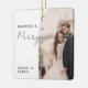 Ornement En Céramique Married and Merry Photo Minimal Script Elegant