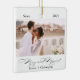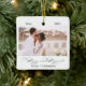 Married Merry Photo First Christmas As Ceramic Ornament. Elegant modern minimal minimalist simple design featuring a hand letters script font. Customize both sides of the ornament with your favorite picture of the newlyweds and personalize the messaging. A unique keepsake for Christmas, the holidays, or an anniversary present. Contact me for matching products or help with personalization at truullc@gmail.com
