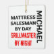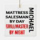 Cet ornement avec la citation "Mattress Salesman by Day Grillmaster by Night" est parfait pour tout vendeur de matelas qui aime griller.