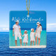 Chic customizable beach family photo Christmas ornament with your favorite tropical photo in the sun. Add a full photograph of your favorite memory from your island vacation to the coast on the front and one on the back. A beautiful coastal holiday ornament gift with pretty white script over the picture.