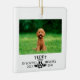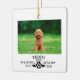 Ornement photo en souvenir affectueux pour un mémorial d'animal de compagnie avec empreinte de patte et ailes d'ange. Le verso peut également être personnalisé avec le nom et les années. Ce souvenir comporte un overlay blanc en bas pour faire ressortir le texte.